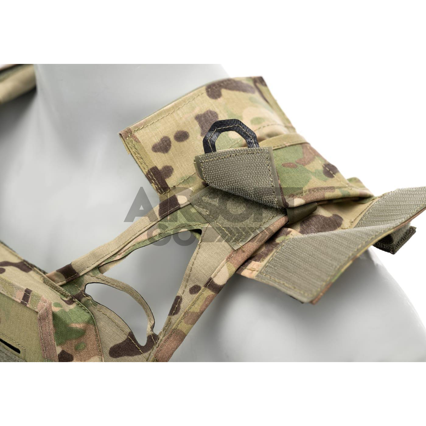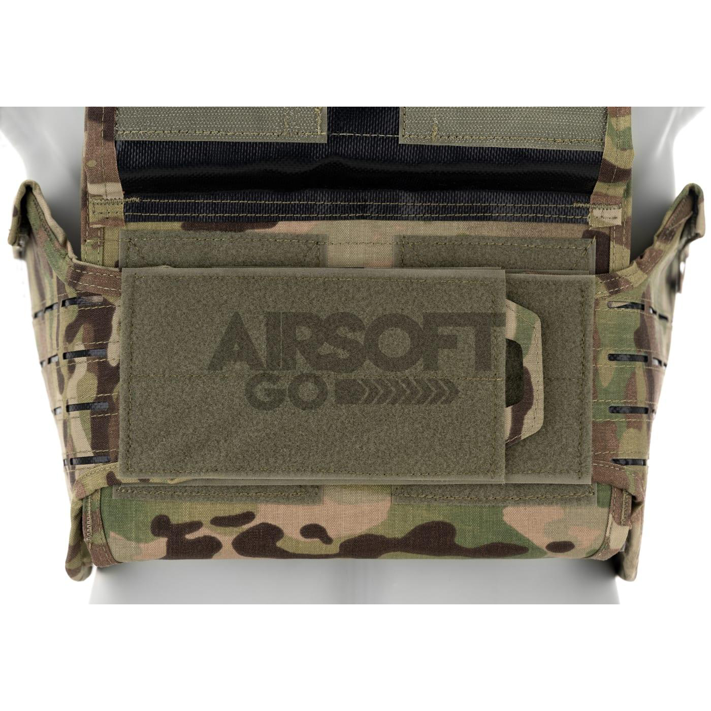 Ees- ja selja ülaosas asuvad takjapaneelid (hook-and-loop) üksuse tunnusmärkide või muude embleemide kinnitamiseks, samuti päästekäepide kasutaja kiireks ja lihtsaks evakueerimiseks ohtlikust tsoonist. Esiosas on kolm lamedat taskut M4-tüüpi salvide jaoks – vajadusel saab need taskud täielikult sulgeda, et tagada kandjale täiesti sile esipind. Õlgade ümber asub kaheksa elastset rihma sidevahendi kaablite või joogisüsteemi (hydration) torude fikseerimiseks.