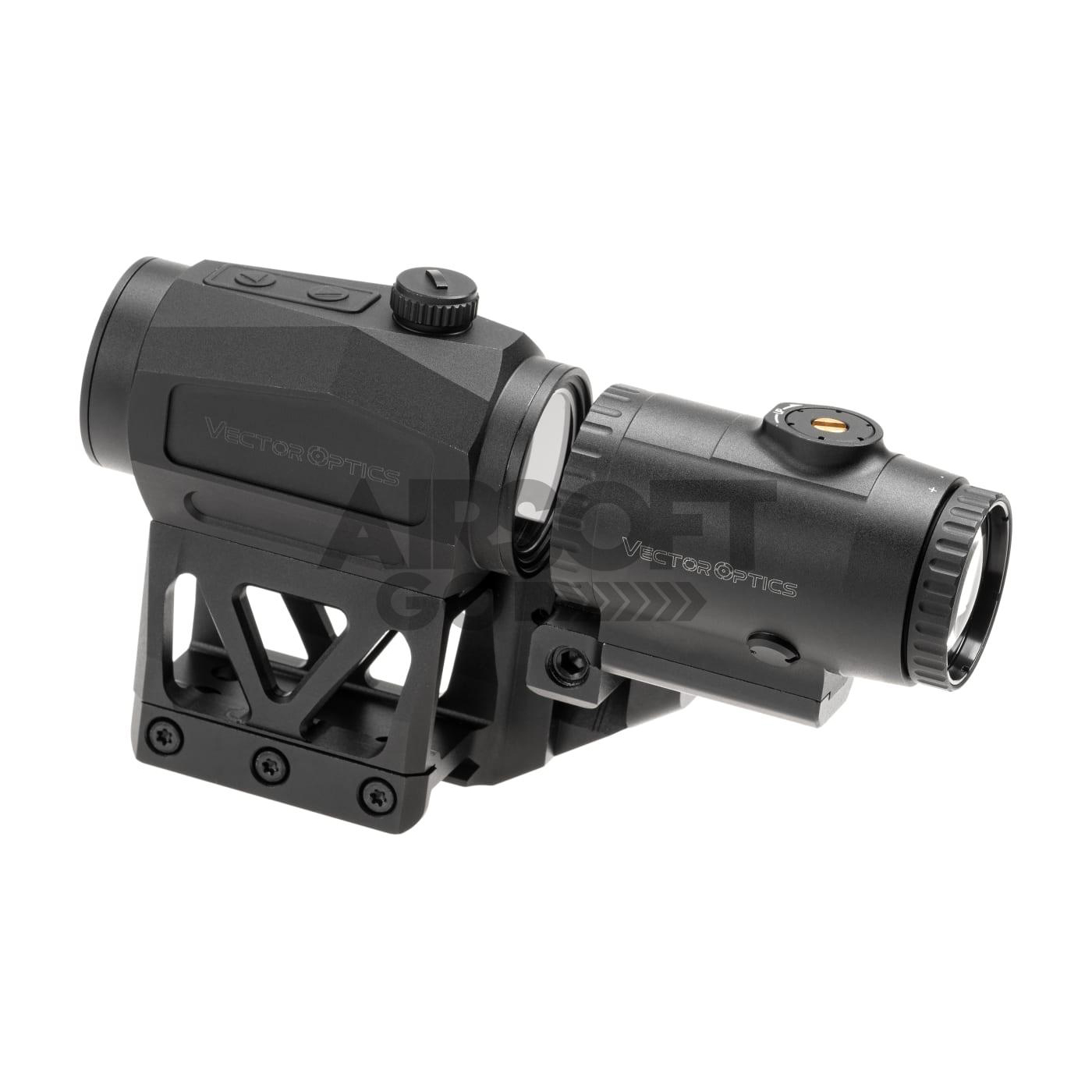 Küljele pööratav või alla klapitav kinnituse disain võimaldab hetkega lülituda punatäppsihikule, et tegutseda kiiremini lähidistantsil.