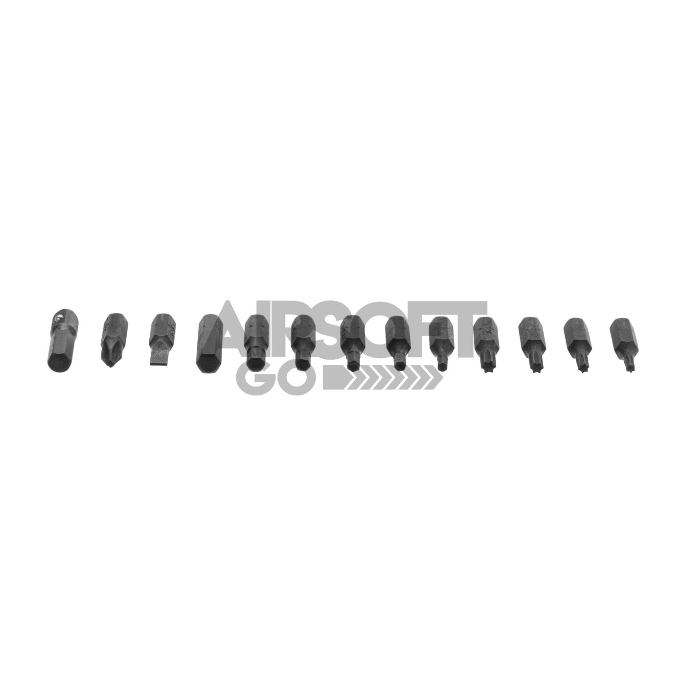 X3-kruvikeeraja ühendab ühes kompaktses lahenduses kolm tööriista: 72-hambaline mehhanism töötamiseks kitsastes kohtades, T-käepide kiireteks seadistusteks ning traditsiooniline kruvikeeraja täpseks juhtimiseks. Komplekti kuuluvad 12 hädavajalikku otsikut, 1/4-tolline kuuskant–1/4-tolline ruutadapter, 1/2-tolline padrun ja korrastatud, ilmastikukindel pehme vutlar mugavaks kaasaskandmiseks. See komplekt on mõeldud nii professionaalseks kui ka harrastuskasutuseks ning on hädavajalik relvade kindlaks ja täpseks hooldamiseks.